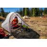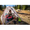 Fly Creek HV UL1 Solution er et 3-sæsoners telt fra mærket Big Agnes, ideelt til solo vandrere, der garanterer volumen og letvægt. Med en vægt på kun 907 gram er dette dome-telt udstyret med en Y-struktur, der giver et rummeligt opholdsrum. Fly Creek HV UL1 Solution's indre telt i myggenet fremmer lethed og ventilation, hvilket reducerer risikoen for kondens betydeligt. Særligt velegnet til sommersæsonen og høje temperaturer, Fly Creek HV UL1 Solution undgår træk i ansigtet om natten takket være det fulde stof i den nederste del af det indre telt. Under varme og tørre bivuakker er det muligt kun at opsætte det indre telt for at nyde stjernerne uden at blive forstyrret af myg. Du vil også sætte pris på de to sidelommer og loftlommen, der er ideelle til at hænge en lampe op og holde alle dine småting inden for rækkevidde. Den store frontdør på Fly Creek HV UL1 Solution giver nem adgang, mens apsis foran er rummelig nok til at opbevare alt dit udstyr. Meget praktisk, dette telt er let at sætte op, det indre telt klipses direkte til stængerne, og oversejlet placeres ovenpå. Med den tilhørende bundplade (ikke inkluderet) kan du kun opsætte oversejlet for at få et ultralet ly. Endelig, med en belægning af ripstop polyamid med silikone, tilbyder både oversejlet og bunden af Fly Creek HV UL1 Solution en vandtæthed på 1.200 mm, hvilket holder dig tør i let regn.