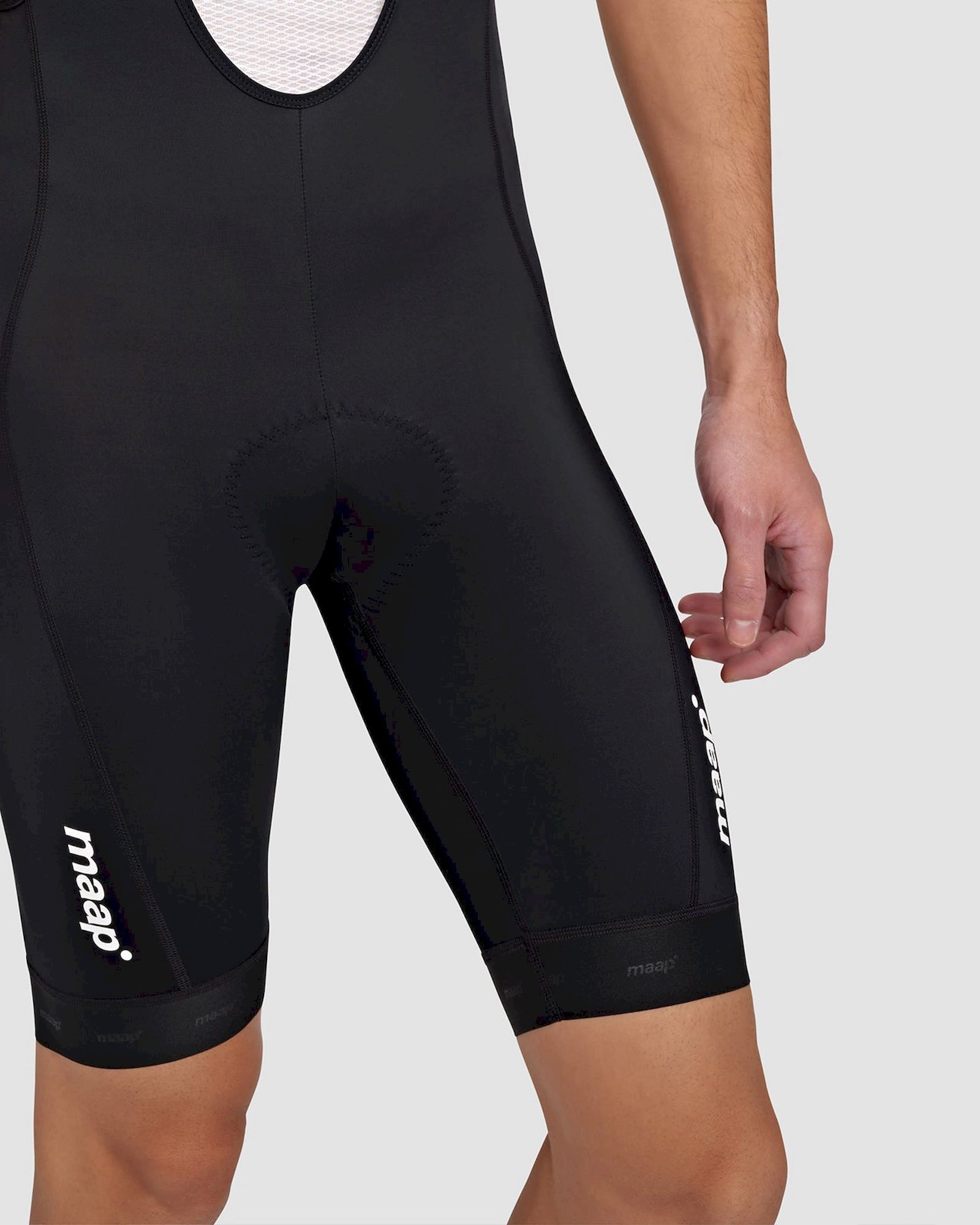 Med MAAP-logoer giver disse cykelbukser Training Bib 3.0 fra mærket MAAP bedre synlighed under dårlige lysforhold: De vil ledsage dig sikkert fra daggry til skumring!