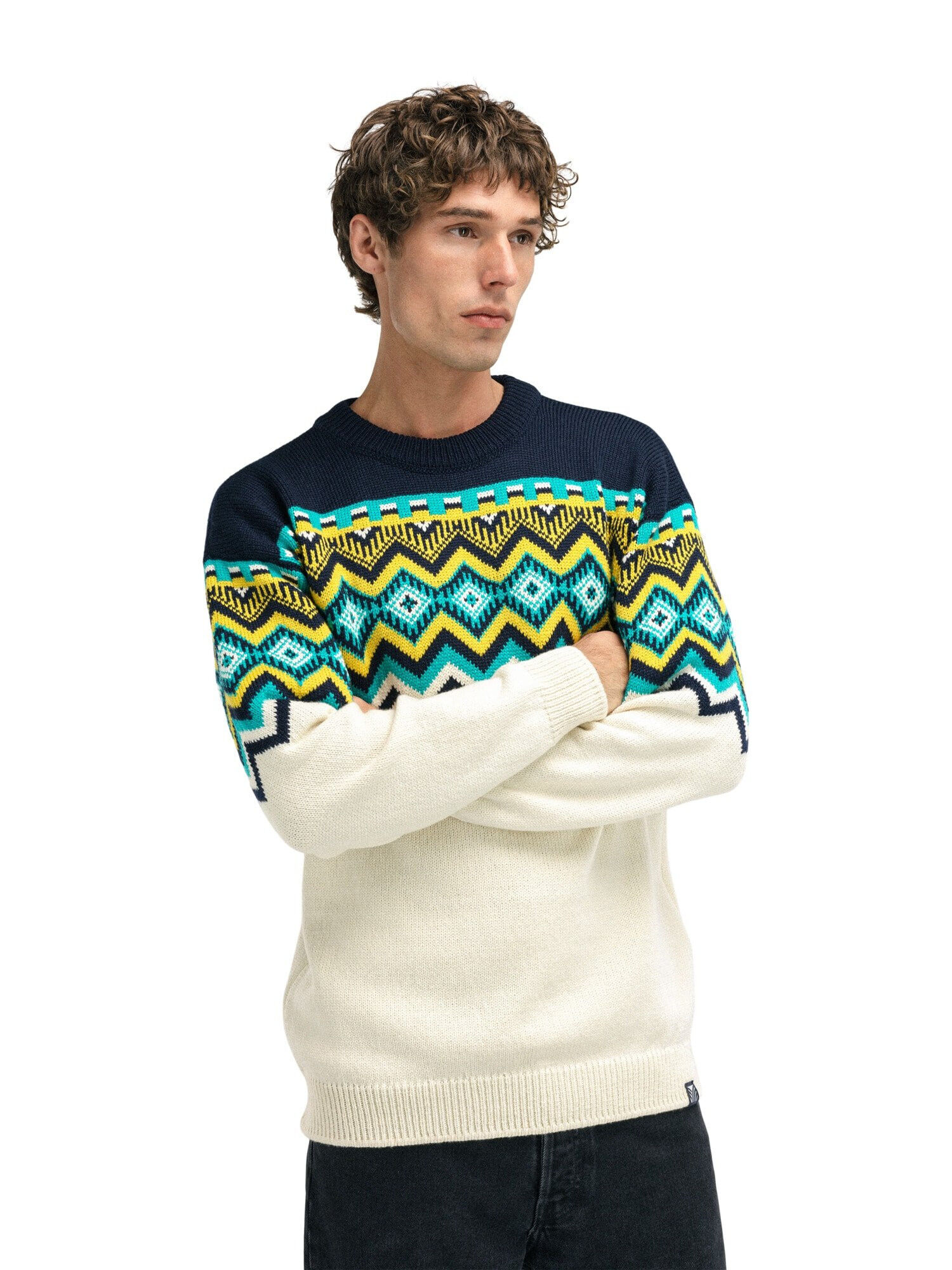 En merino sweater med super bløde mønstre og dristige farvekombinationer. Selvom designet er inspireret af klassiske skitrøjer, er Randaberg en herretrøje, der kan bæres både på pisterne og i byen.