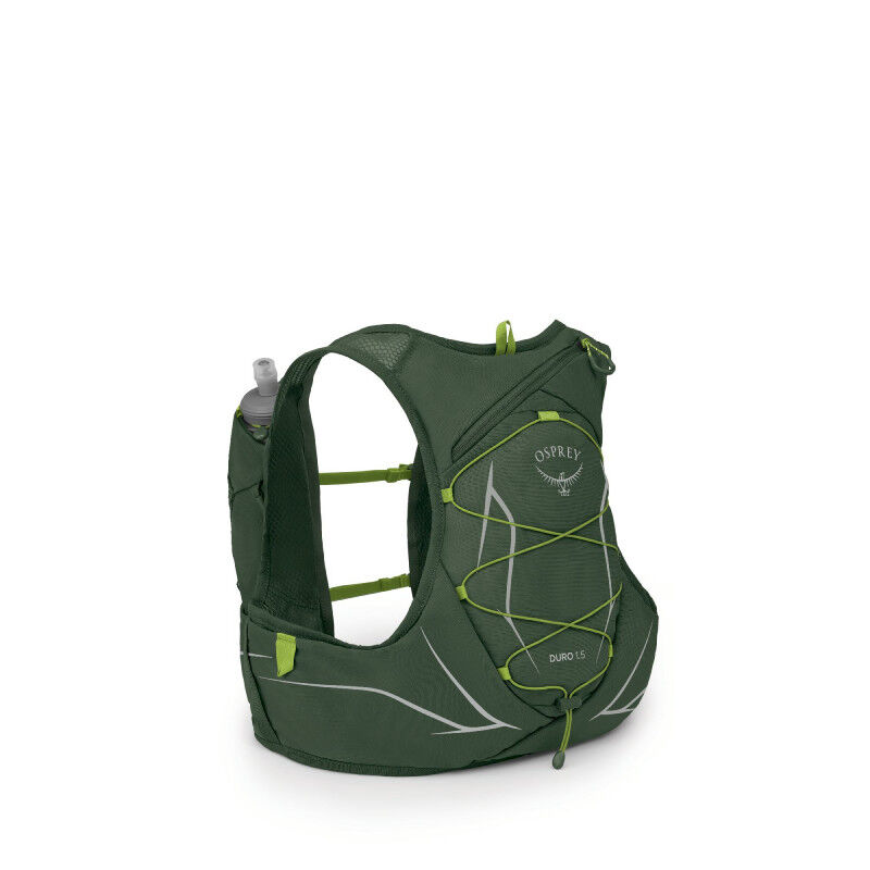 Løbevesten Duro 1.5 designet af Osprey til mænd tilbyder en række funktioner for at imødekomme de mest krævende løberes behov. Udstyret med to ekstra store lommer i strækbart mesh samt to nederste lommer til din ernæring, giver den dig mulighed for at organisere dit udstyr optimalt. Duro 1.5 er udstyret med et hydreringshylster med direkte adgang via lynlås og slangevej til nem påfyldning. To 500 ml bløde flasker er inkluderet for øjeblikkelig hydrering.