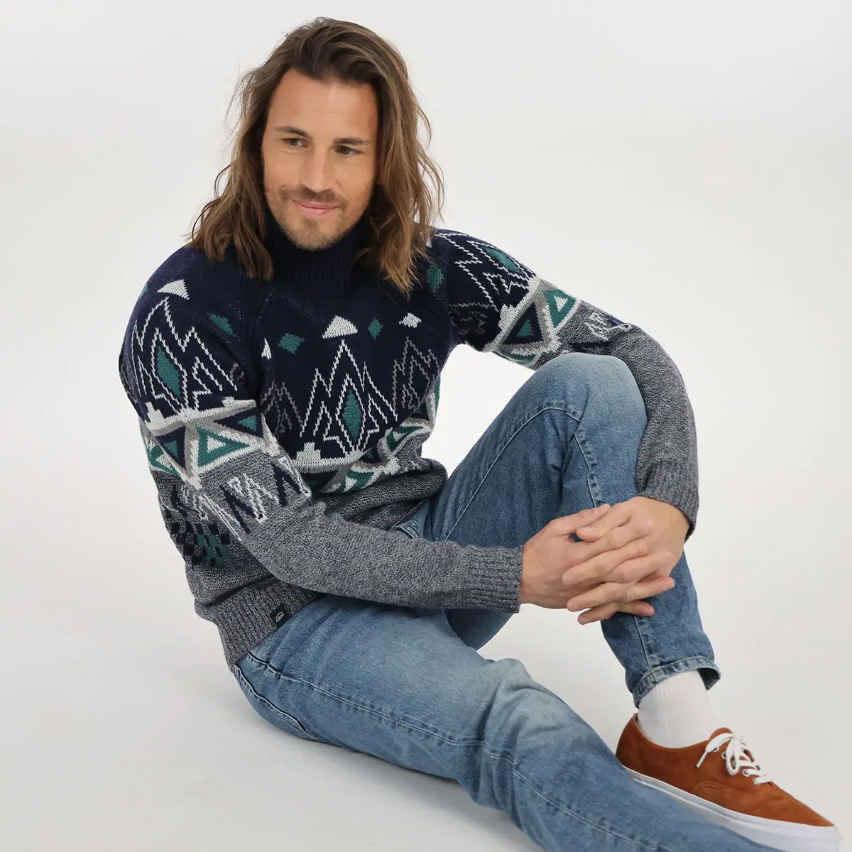 Sweateren Permag til mænd fra mærket Oxbow er en rullekrave, der skiller sig ud med sine farverige mønstre og løse pasform. Bestående af 80% uld og 20% polyamid, kombinerer den varme og holdbarhed. Med en gauge 5 tilbyder denne Permag sweater en tyk og behagelig tekstur, ideel til at klare kolde dage med stil!