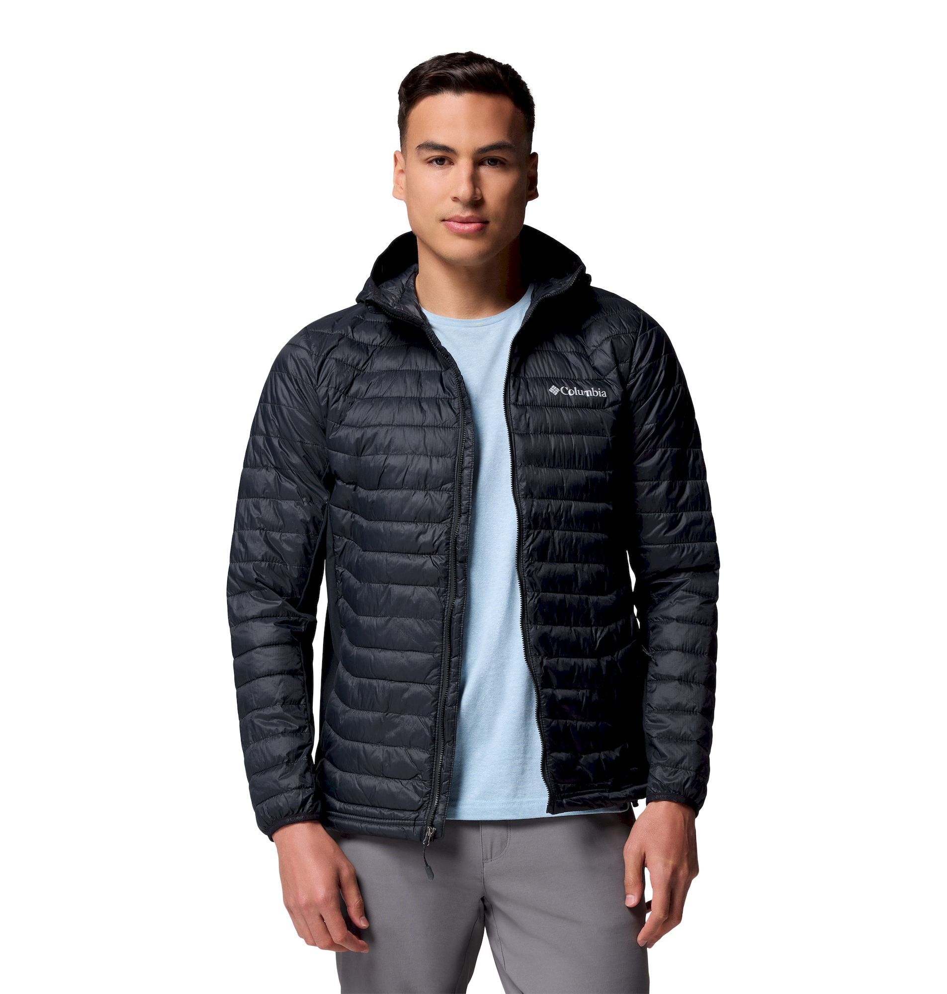 Når vejret beslutter at spille med dine nerver midt i en vintervandring, kan du stole på Powder Pass Hybrid Hooded Jacket til mænd med syntetisk dunjakke med hætte. Designet af Columbia til at modstå naturens luner, holder den dig varm, mens den giver en uovertruffen bevægelsesfrihed. Det er den perfekte allierede for dem, der ikke kan vælge mellem hyggelig komfort og tekniske præstationer.